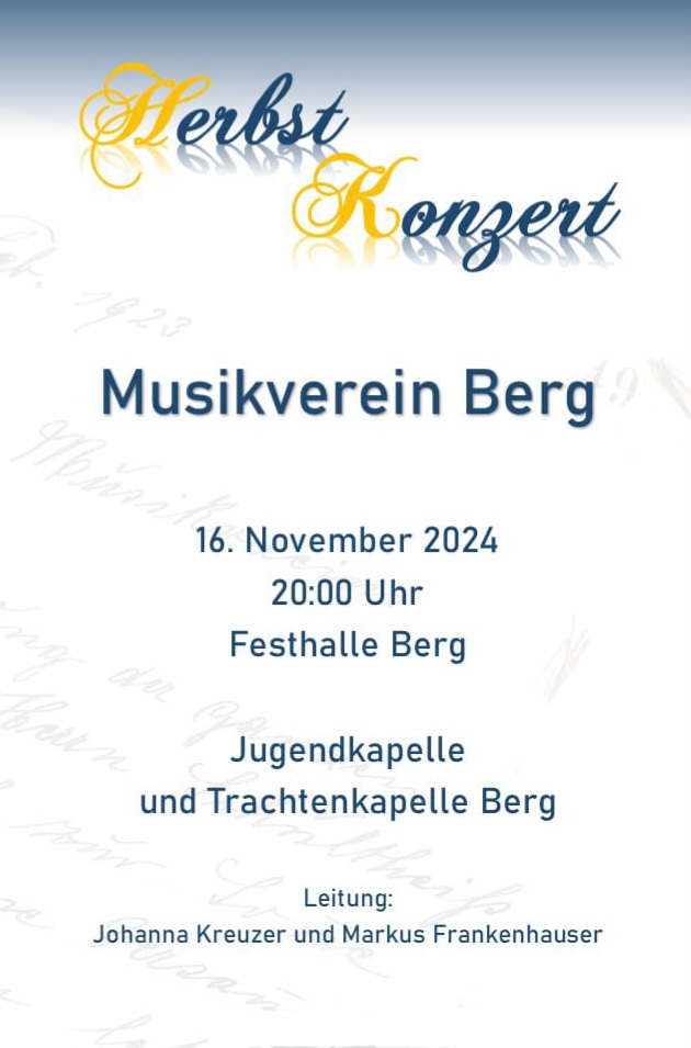 Auf Ihr zahlreiches Kommen freut sich unsere Jugendkapelle und der Förderverein für Jugendausbildung des Musikvereins Berg.